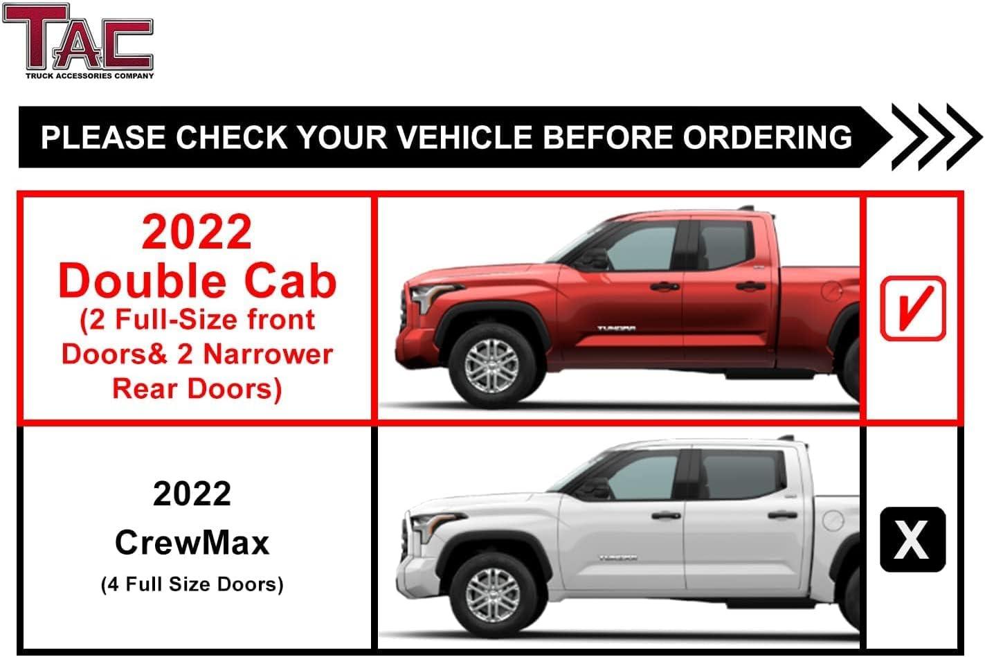FITMENTS – Only Fits 2022-2024 Tundra Double Cab(If you have any questions, please contact us to confirm fitment before ordering).