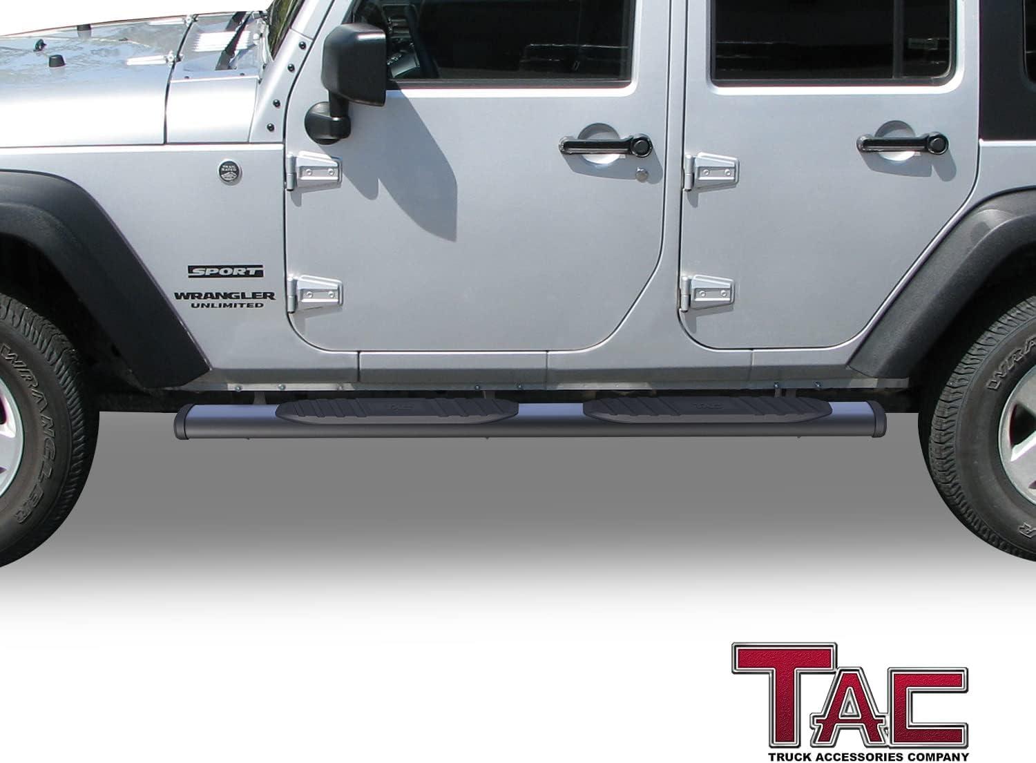 TAC Side Steps Running Boards Fit 2018-2024 Jeep Wrangler JL 4 Door SUV 4 inches Oval Texture Black Side Bars Step Rails Nerf Bars Rocker Panel Off Road Accessories 2pcs(3 inch Black)