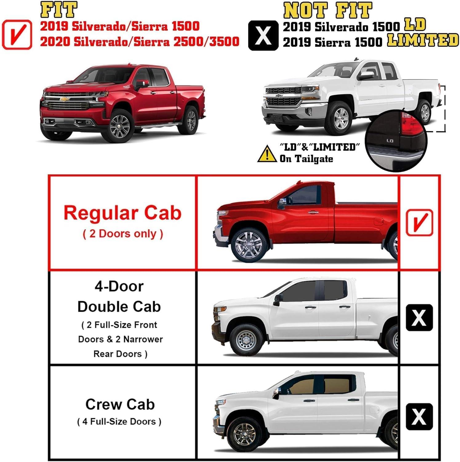 APPLICATION – Only Fit 2019-2024 Silverado/Sierra 1500 | 2020-2023 Silverado/Sierra2500/3500 Regular Cab (If you have any questions, please contact us to confirm fitment before ordering).