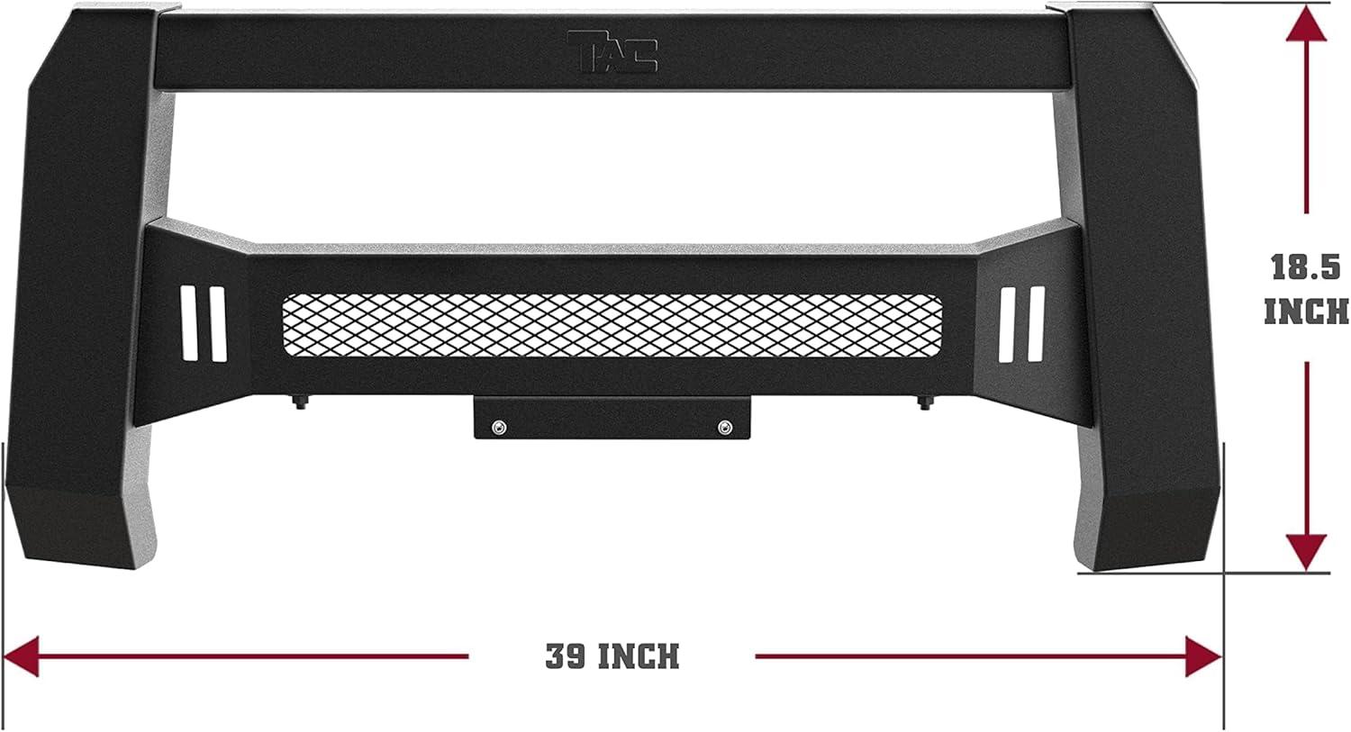 OE QUALITY MADE – TAC Predator Bull Bar made of heavy-duty all-steel frame, solid and durable. It is consisted of five parts mainly, increase your DIY fun and equip your truck. TAC dual stage fine textured black finish for rust resistance and customized look! It can provide front protection. It may interfere with front sensors.