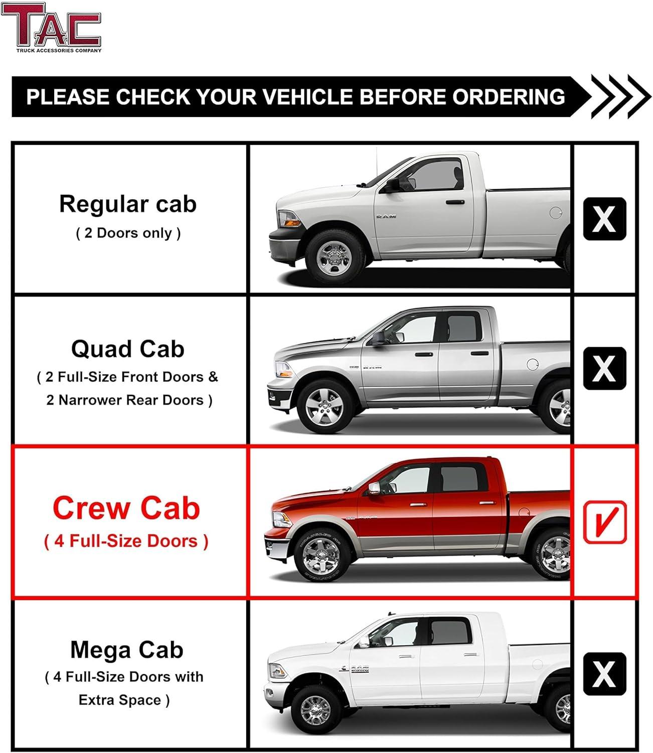 FITS PERFECTLY – Compatible with 2009-2018 RAM 1500 Crew Cab | 2019-2024 CLASSIC RAM 1500 Crew Cab | 2010-2025 RAM 2500/3500/4500/5500 Crew Cab (Please contact us to confirm fitment before ordering.)