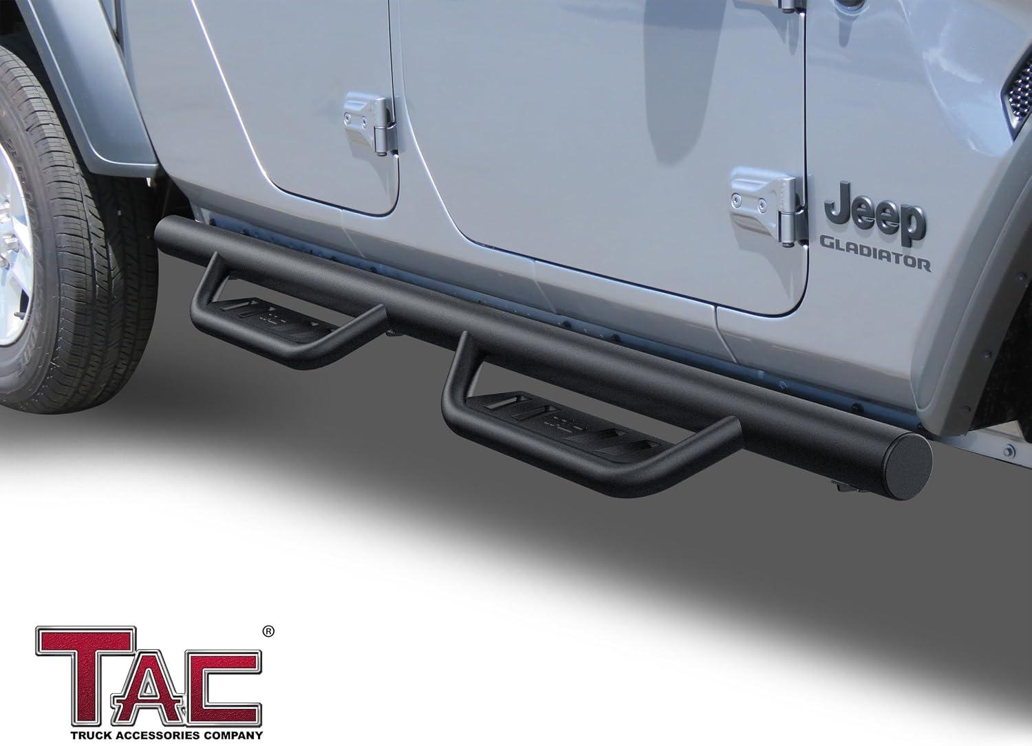 TAC Side Steps Compatible with 2020-2025 Jeep Gladiator JT | 4" Drop Running Boards Nerf Bars | Pickup Truck Off-Road Exterior Accessories | Fine Texture Black 2pcs