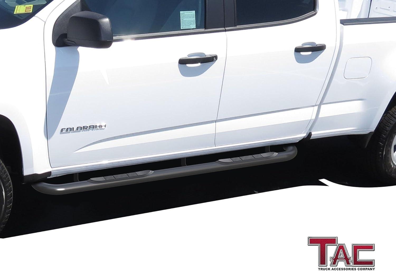 TAC Side Steps Fit 2015-2025 Chevy Colorado/GMC Canyon Crew Cab (90deg Bent Ends) Pickup Truck 3″ Stainless Steel Side Bars Nerf Bars Running Boards Rock Panel Off Road Accessories 2 Pieces(Heavy Texture)