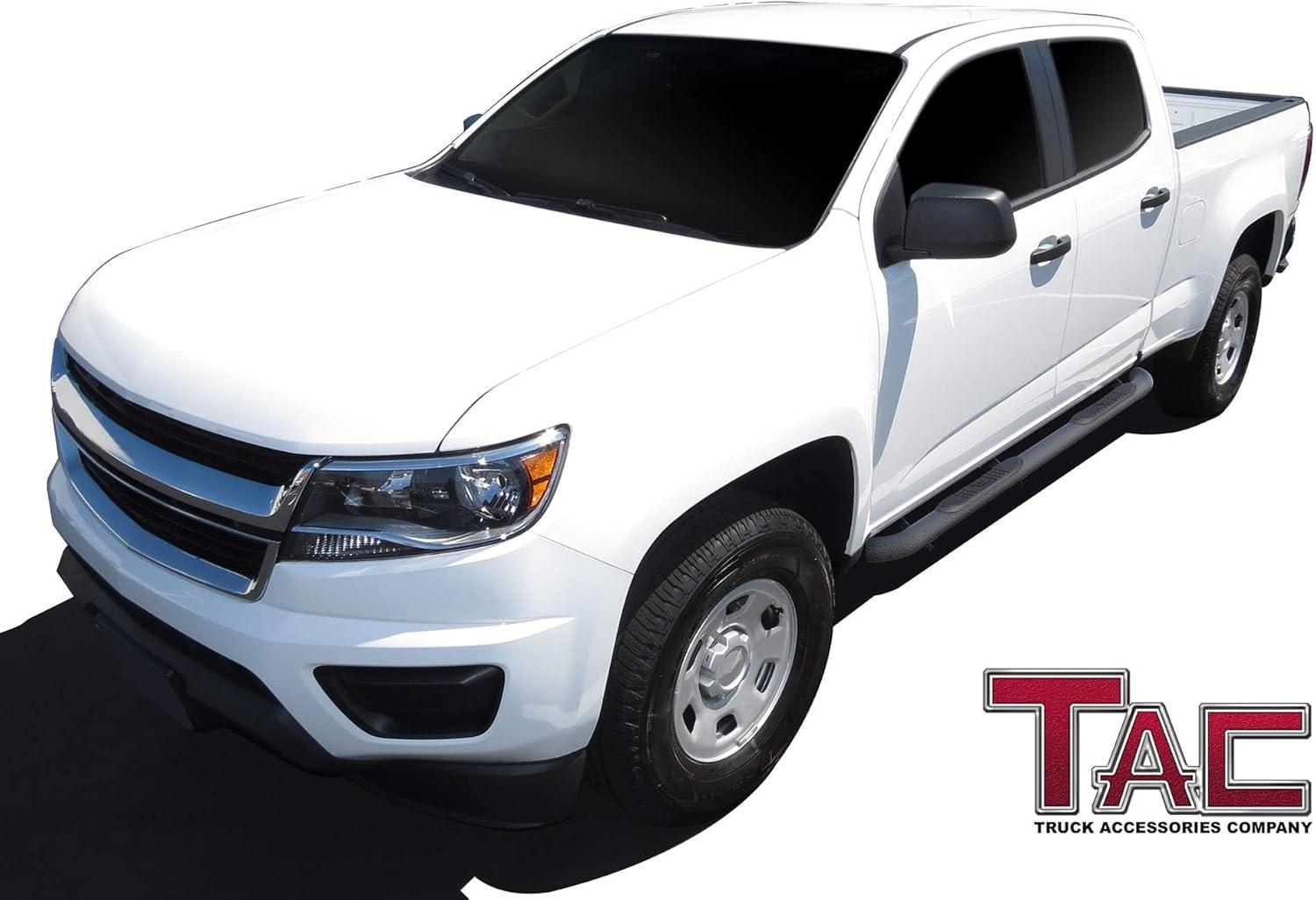TAC Side Steps Fit 2015-2025 Chevy Colorado/GMC Canyon Crew Cab (90deg Bent Ends) Pickup Truck 3" Stainless Steel Side Bars Nerf Bars Running Boards Rock Panel Off Road Accessories 2 Pieces(Heavy Texture)