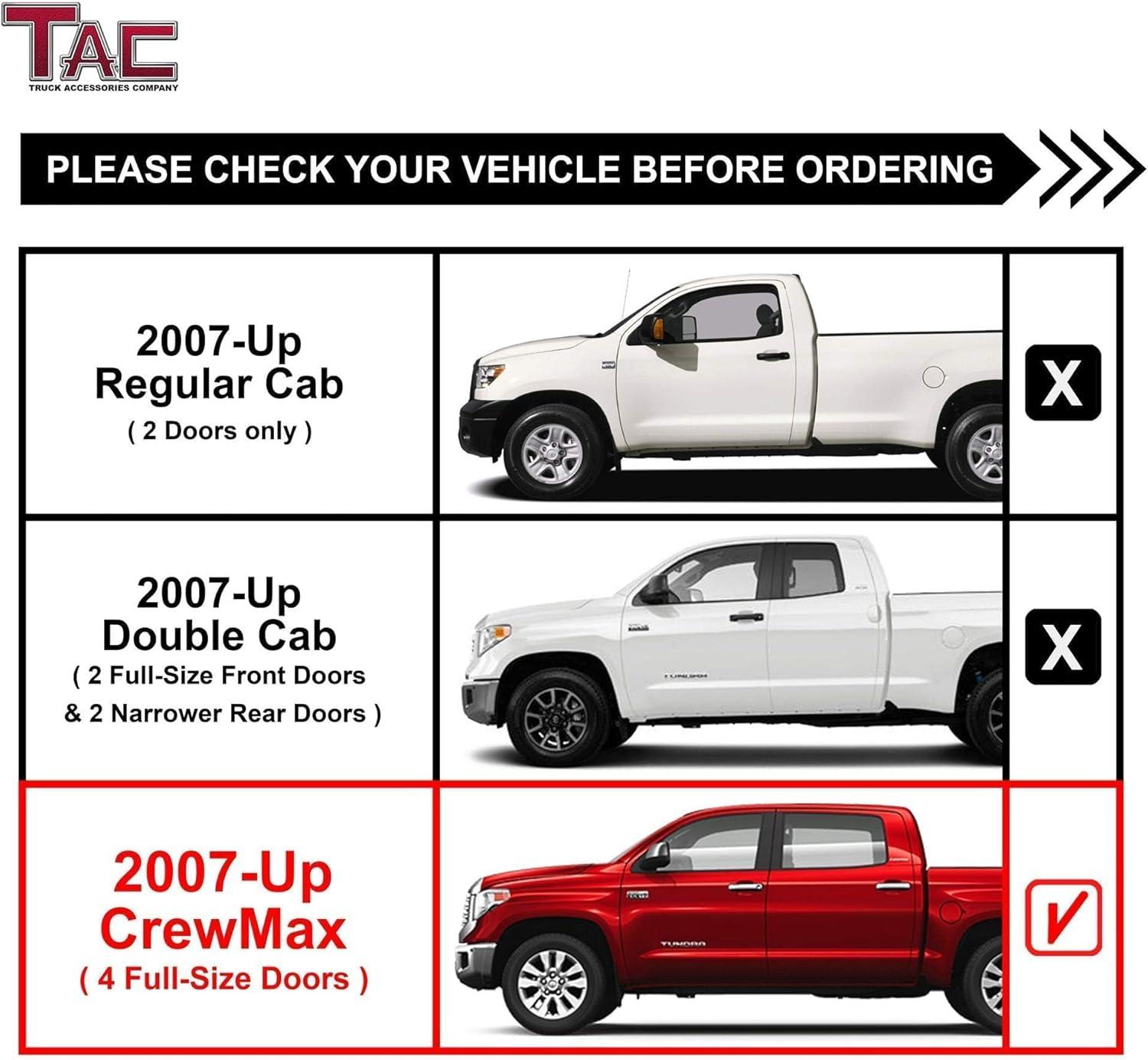 TAC Side Steps Running Boards Compatible with 2022-2025 Toyota Tundra CrewMax Pickup Truck 3″ Stainless Steel Side Bars Step Rails Nerf Bars Off Road Accessories 2 pcs(3 inch Heavy Texture)