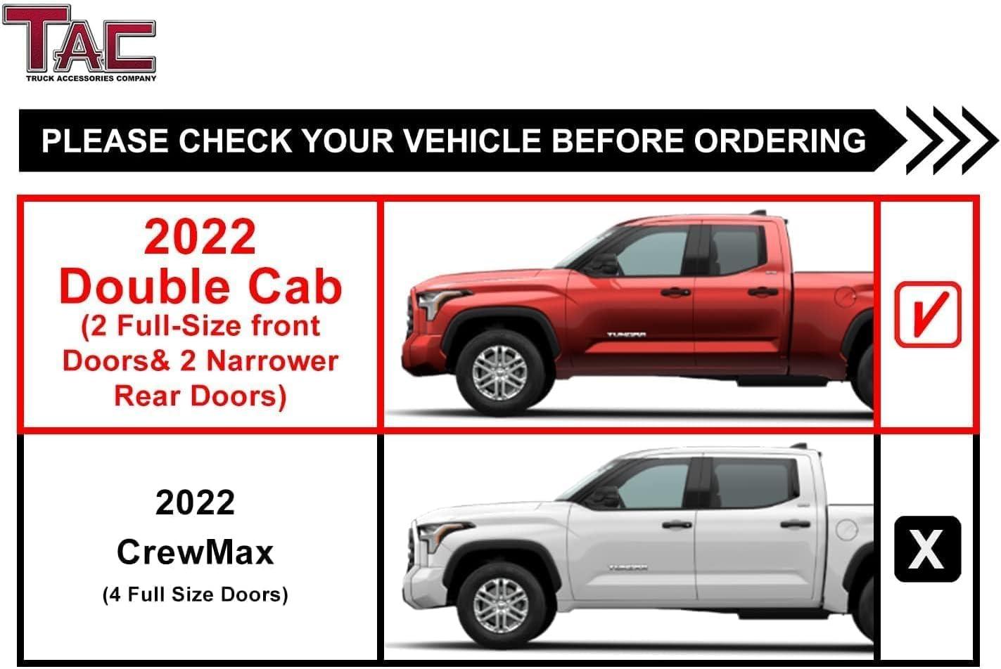 APPLICATION – Only fit 2022-2024 Tundra Double Cab (If you have any questions, please contact us to confirm fitment before ordering).