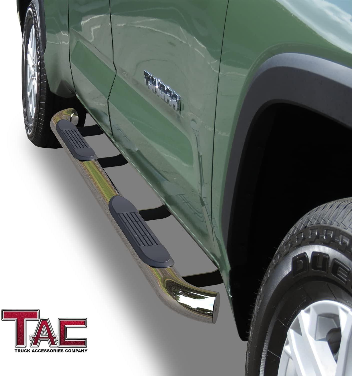 TAC Side Steps Running Boards Compatible with 2022-2025 Toyota Tundra Double Cab Truck Pickup 3” Black Side Bars Nerf Bars Off Road Exterior Accessories 2Pcs(Polish)