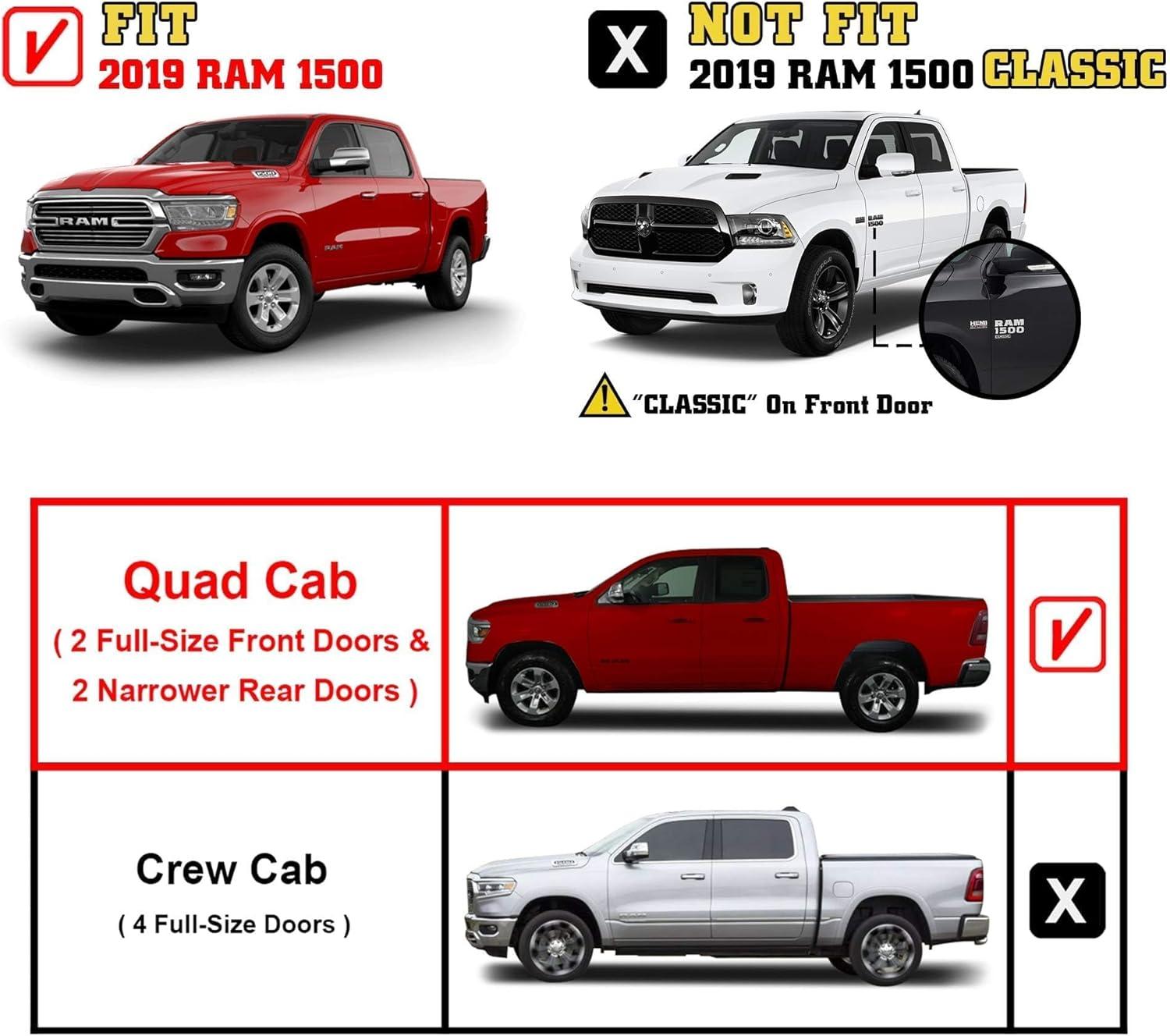 FITS PERFECTLY – Compatible with 2019-2022 RAM 1500 Quad Cab (Exclude 2019-2023 RAM 1500 Classic) (If you have any question, please contact us to confirm fitment before ordering).