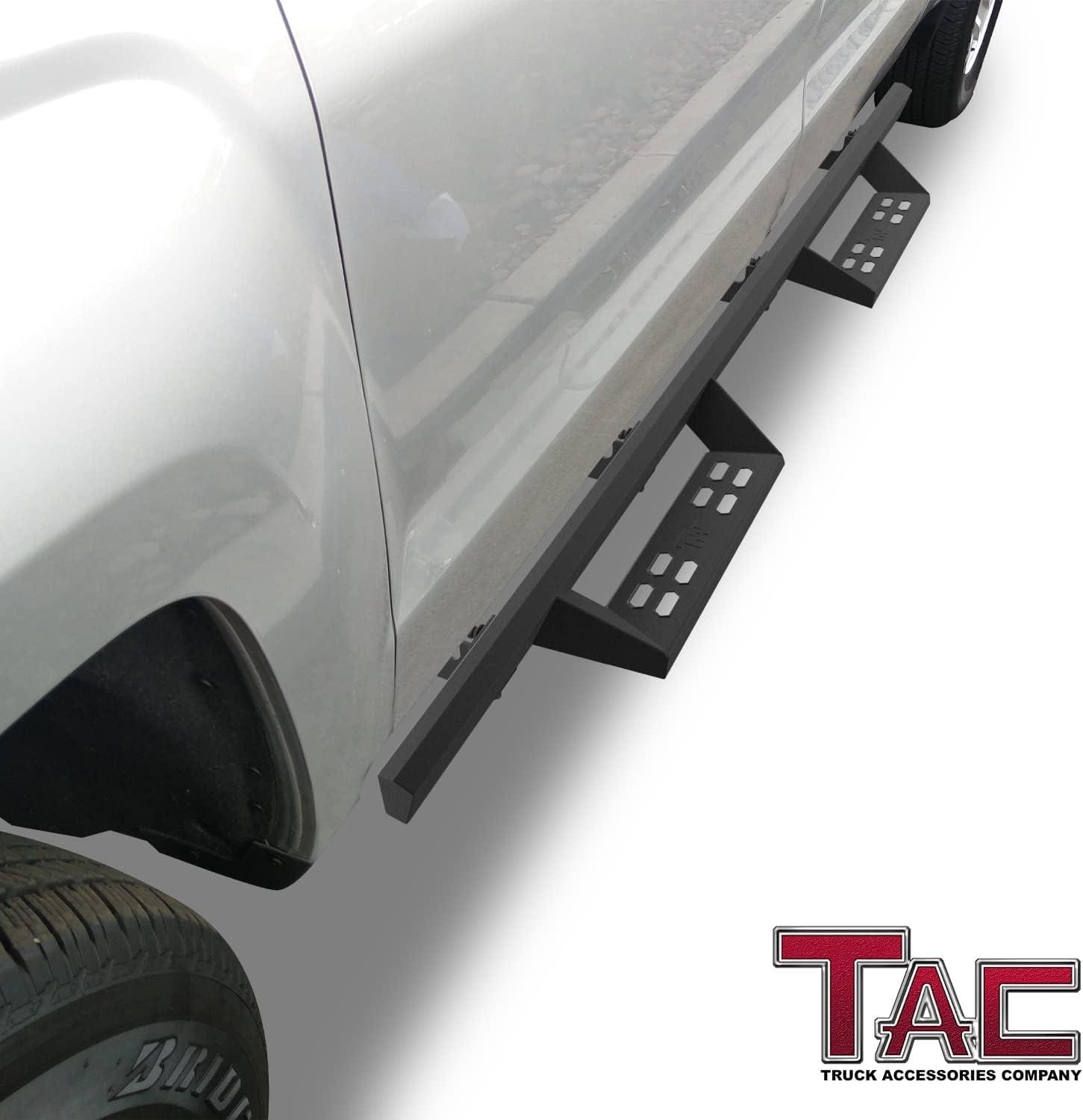 TAC Sniper Running Boards Fit 2007-2018 Chevy Silverado/GMC Sierra 1500 | 2007-2019 2500/3500 Crew Cab Truck Pickup 4″ Drop Fine Texture Black Side Steps Nerf Bars 2pcs(Sidewinder Drop Steps)