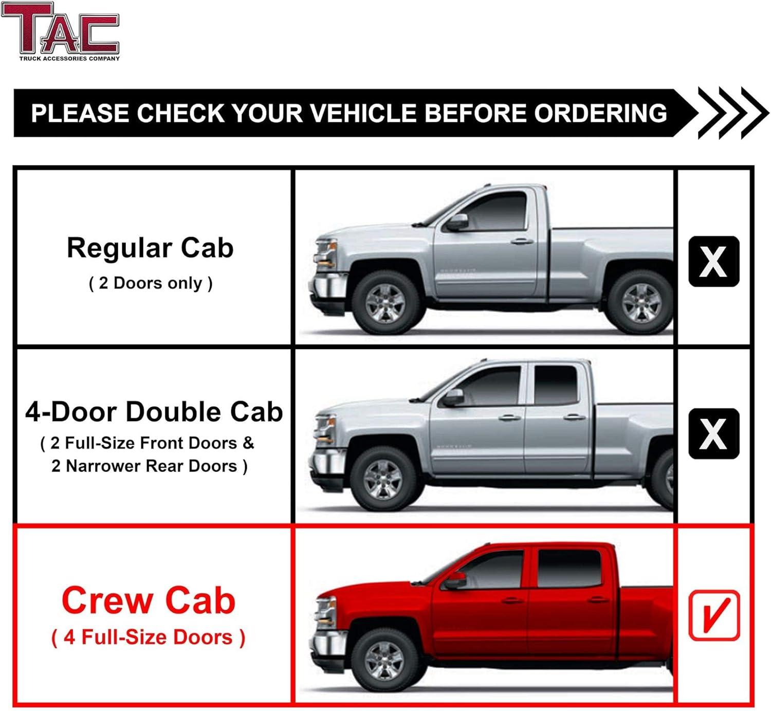 TAC Sniper Running Boards Fit 2007-2018 Chevy Silverado/GMC Sierra 1500 | 2007-2019 2500/3500 Crew Cab Truck Pickup 4″ Drop Fine Texture Black Side Steps Nerf Bars 2pcs(Sniper)