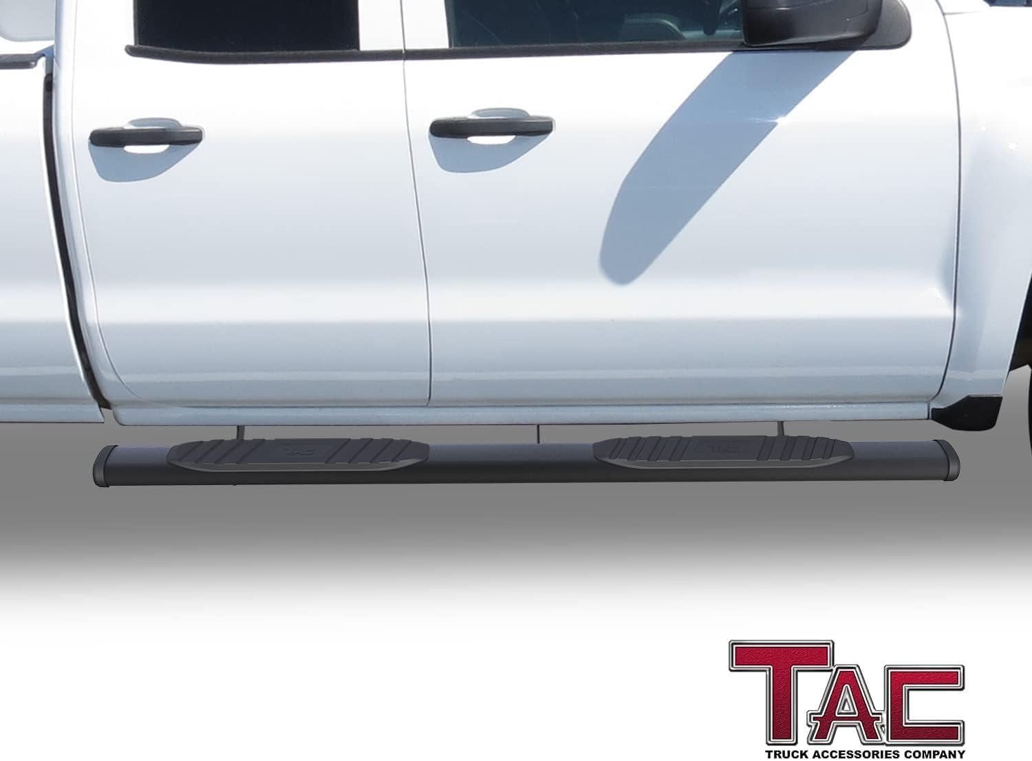 TAC Spear Running Boards fit 2007-2018 Chevy Silverado/GMC Sierra 1500|2007-2019 2500/3500 Extended/Double Cab (Incl.2019 Silverado 1500 LD/Sierra 1500 Limited) 6" Side Step Rail Nerf Bar Black(5 inch Tubular)