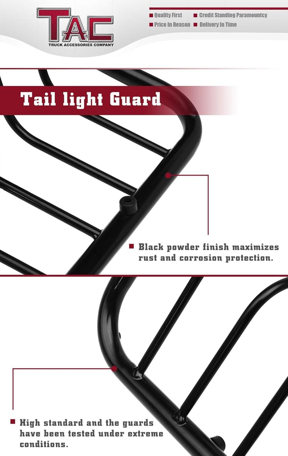 SURFACE FINISH – TAC tail light guard is made of heavy duty steel with dual stage power coated glosses black finish.