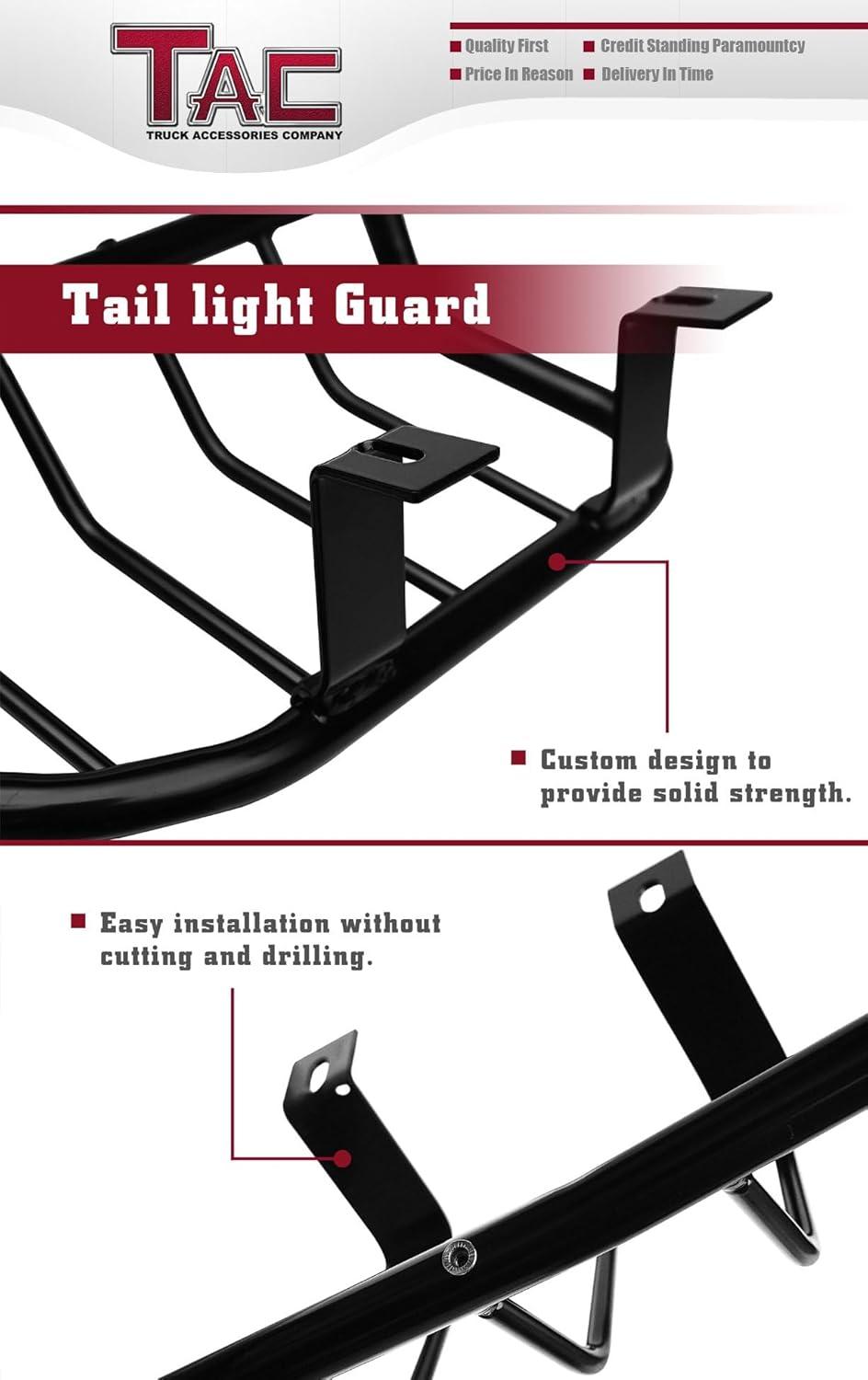 SURFACE FINISH – TAC tail light guard is made of heavy duty steel with dual stage power coated glosses black finish.