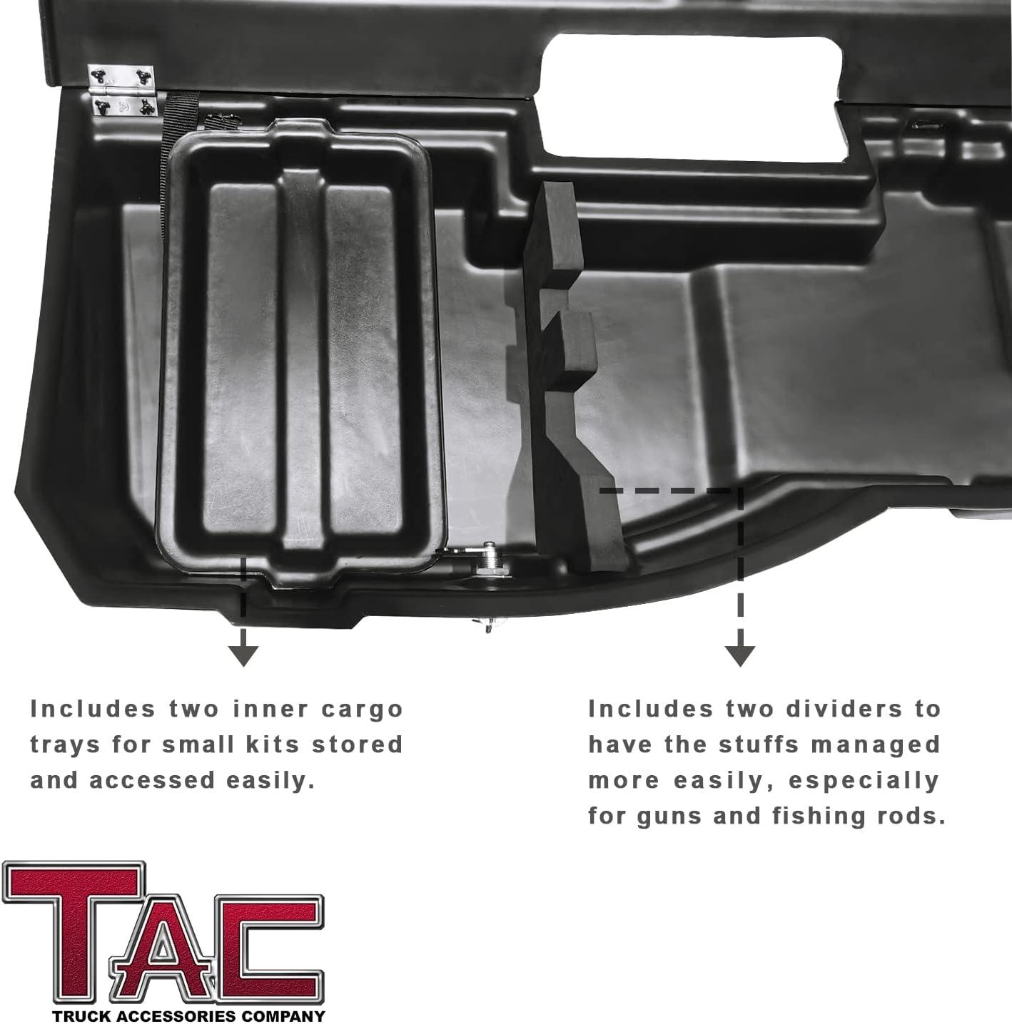 DESIGN – Make of impact-resistant polypropylene. Included two dividers to have the stuffs managed more easily, especially for guns and fishing rods. Also includes two removable inner cargo trays for smaller items stored and accessed easily.